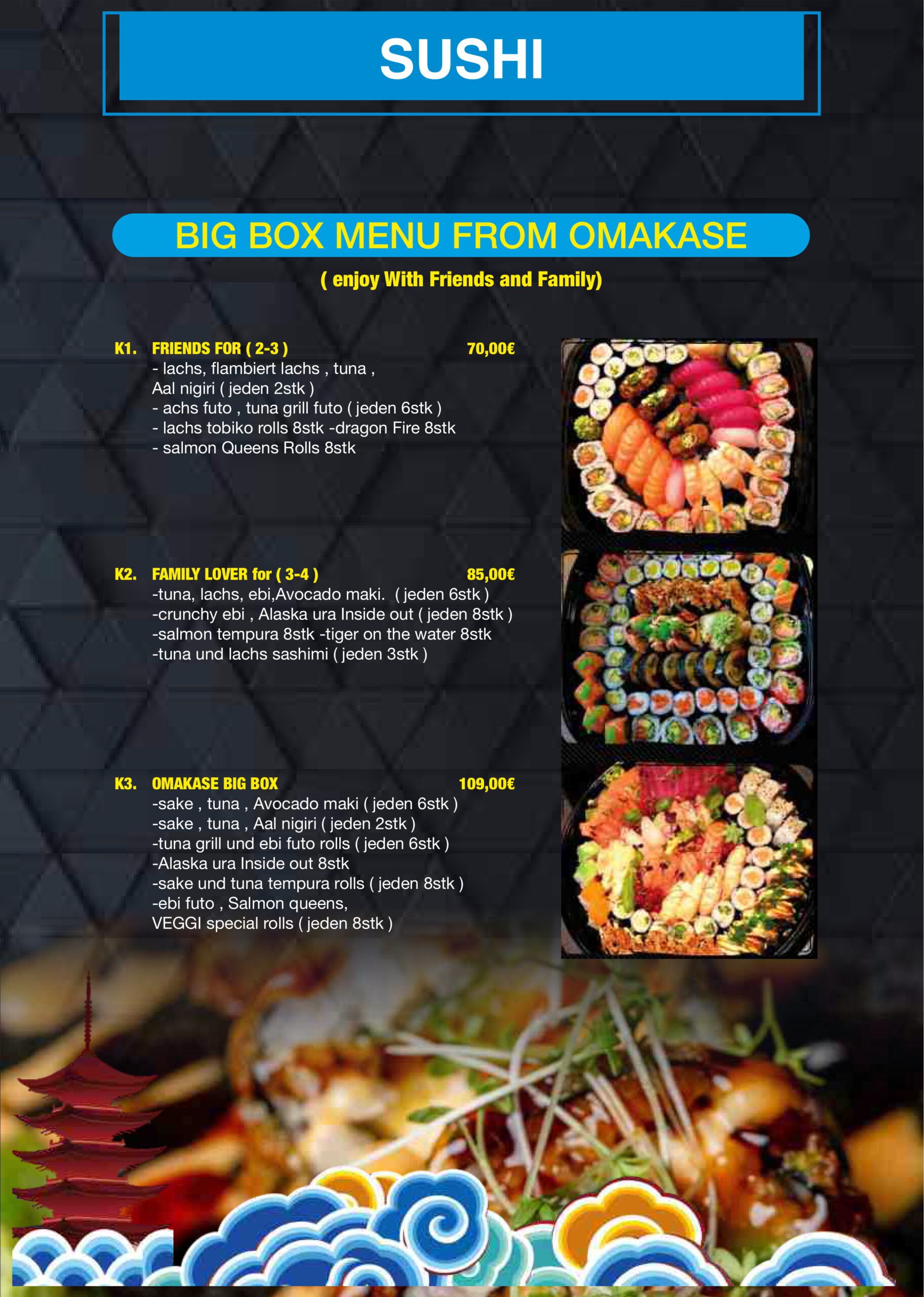 Wir freuen uns auf Ihren Besuch und darauf, gemeinsam mit Ihnen diesen besonderen Start zu feiern. Herzlich willkommen bei OMAKE – Ihrem neuen Lieblingsplatz für Sushi, Asia-Fusion und gute Zeiten!